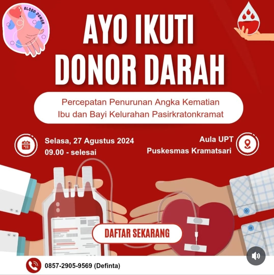 Donor Darah di Aula UPT Puskesmas Kramatsari PUSKESMAS KRAMATSARI 12 Agustus 2024 [13:25:37] 35 UMUM PRINT + DOWNLOAD PDF Ayo lkuti kegiatan Donor Darah di Aula UPT Puskesmas Kramatsari