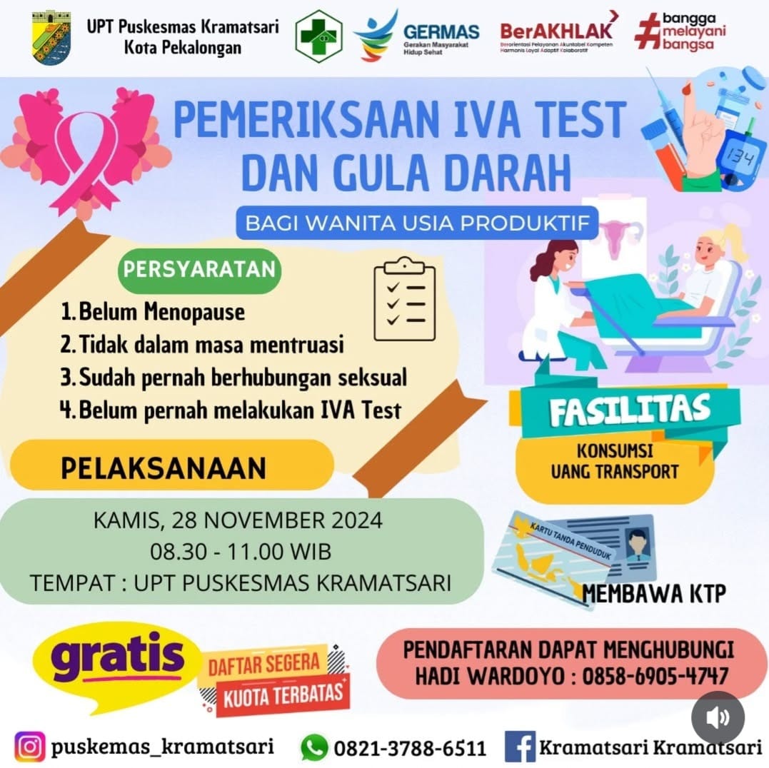 Pemeriksaan IVA TES dan Gula Darah Gratis di UPT Puskesmas Kramatsari